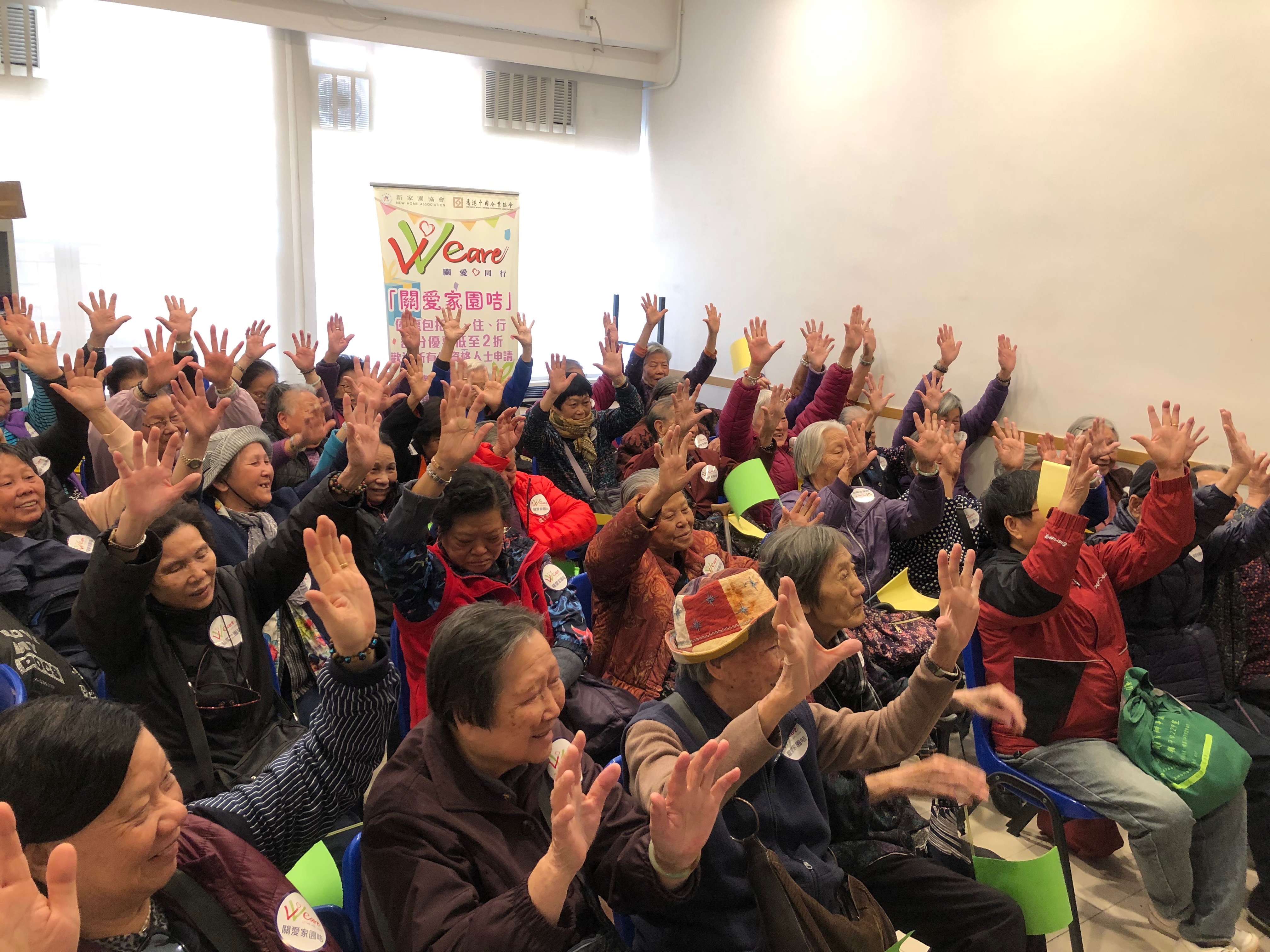 活动简介: 活動以暖身運動展開,會員排排坐,動動手,腦筋、身手更靈活。會員透過簡介會及輕鬆提問,進一步了解關愛咭的內容。現場反應熱烈,會員紛紛舉起黃黃綠綠的旗幟回答問題。破冰過後,會員通過互動遊戲加深認識,一起發放正能量。活動完結前,服務處準備了一些小禮物,讓會員感受到關愛咭給予的關懷,寄意寒冬送暖,活得精彩,「耆」樂融融。