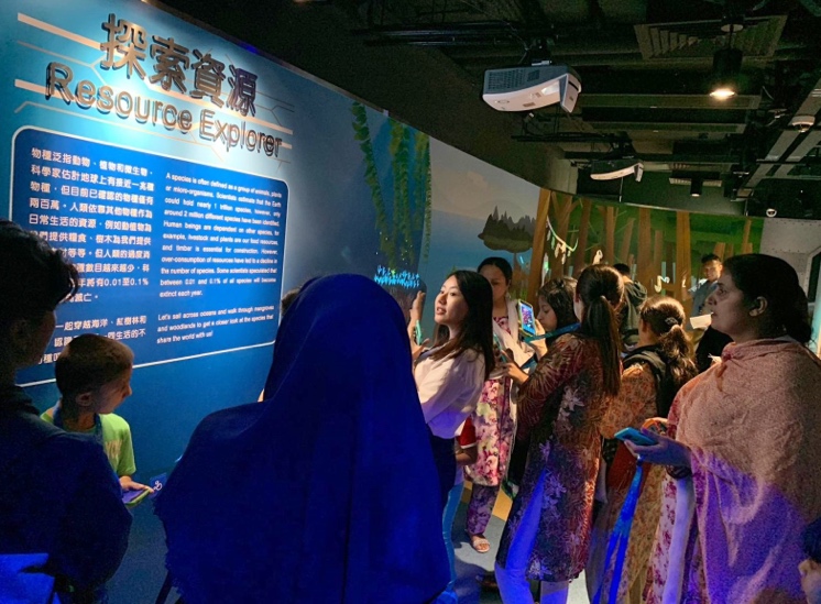 關愛咭的少數族裔會員正使用展館為其準備的電子儀器進行學習體驗。