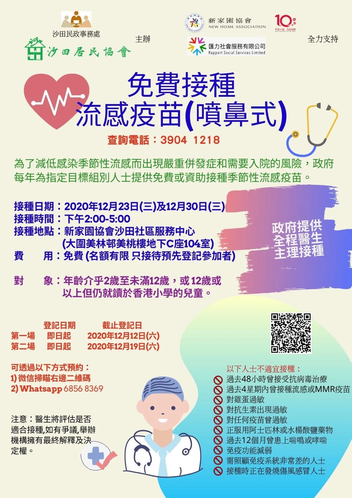 【新界东服务处】免费为儿童接种流感疫苗 即日起接受公众登记 天气转凉,又是流感高峰期,特别是儿童抵抗力弱,更要万分注意。为帮助一众小朋友抵抗流感病毒,本协会新界东服务处联合沙田民政事务处、沙田居民协会及...